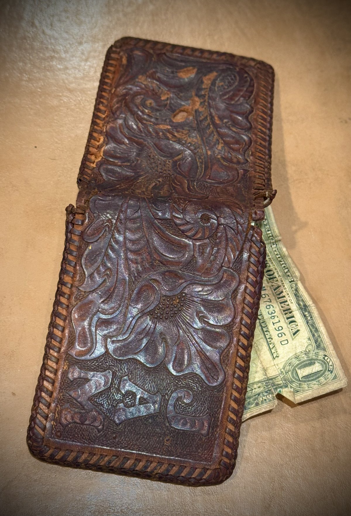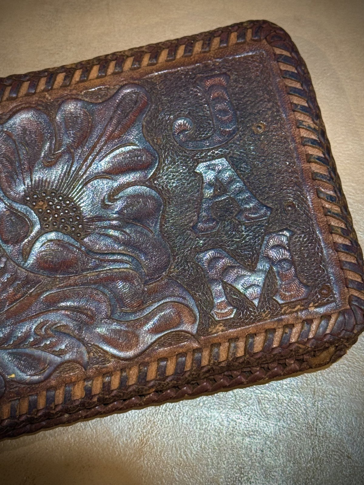 This wallet was one of the pieces that inspired us to found Monarch and Coleman and continue the artistic traditions of our family. This hand-tooled leather bill fold was made for James' son, James Ashley Monarch, during The Great Depression.